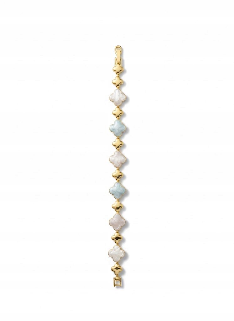• Motyw Koniczyny: Bransoletka zbudowana jest z szeregu małych, czterolistnych koniczynek – symbolu szczęścia.