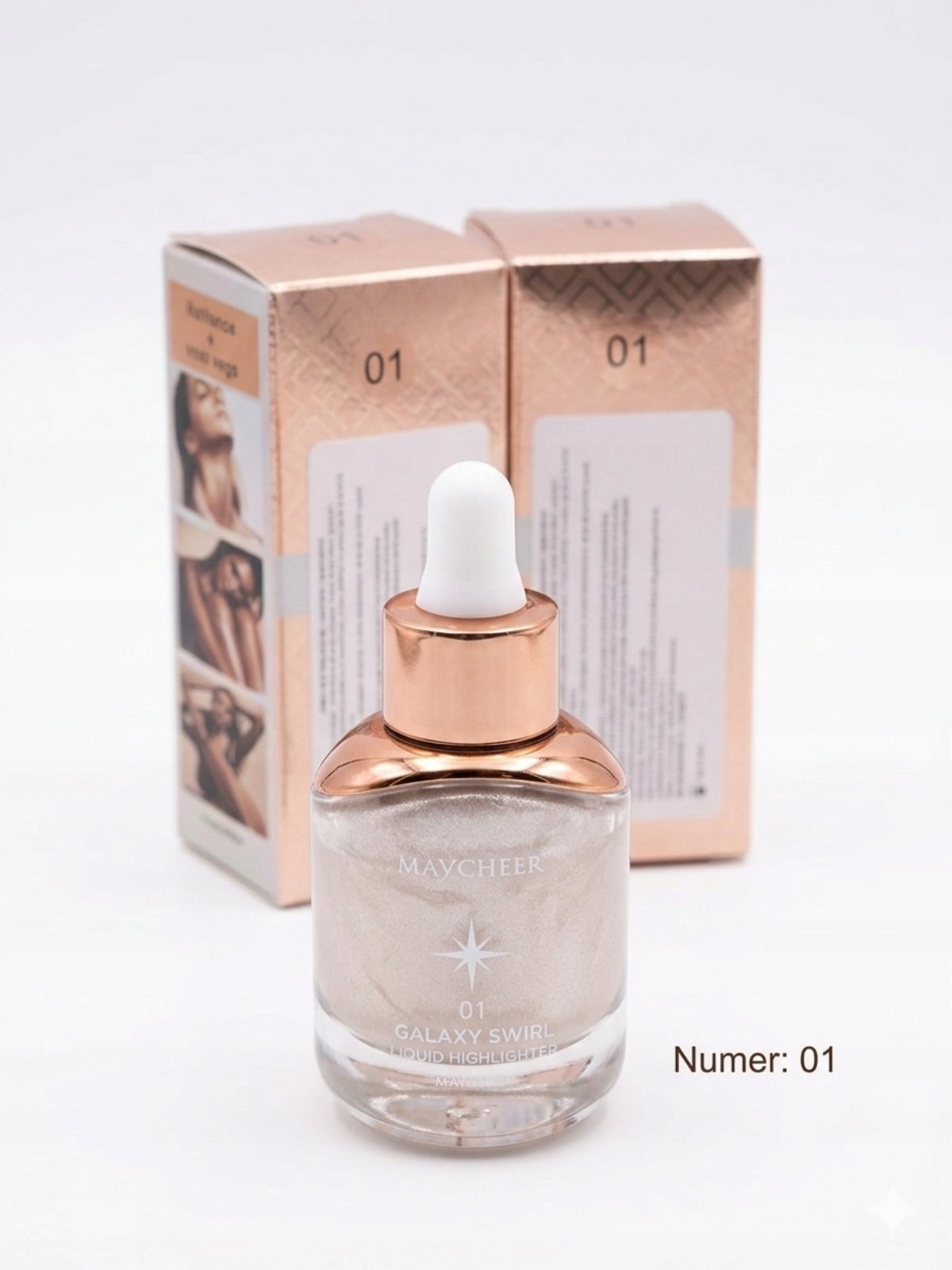 Odkryj moc gwiezdnego pyłu zamkniętą w eleganckiej buteleczce! MAYCHEER Galaxy Swirl Liquid Highlighter to klucz do uzyskania perfekcyjnego efektu tafli na skórze. Niezależnie od tego, czy szykujesz się na wielkie wyjście, czy chcesz dodać blasku codziennemu makijażowi – ten produkt spełni Twoje oczekiwania.
