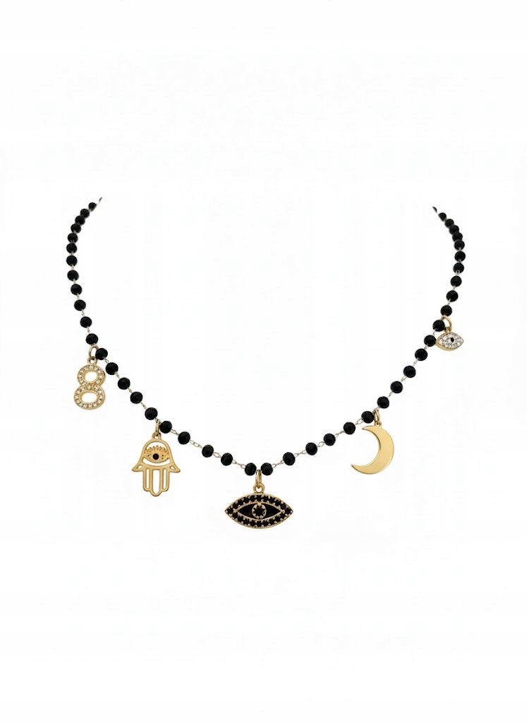 Odkryj magię zamkniętą w biżuterii MoonRiver. Ten ręcznie wykonany naszyjnik to nie tylko piękny dodatek, ale zestaw starannie dobranych symboli, które mają za zadanie chronić i przynosić szczęście. Połączenie głębokiej czerni z lśniącym złotem sprawia, że jest to biżuteria, obok której nie da się przejść obojętnie.