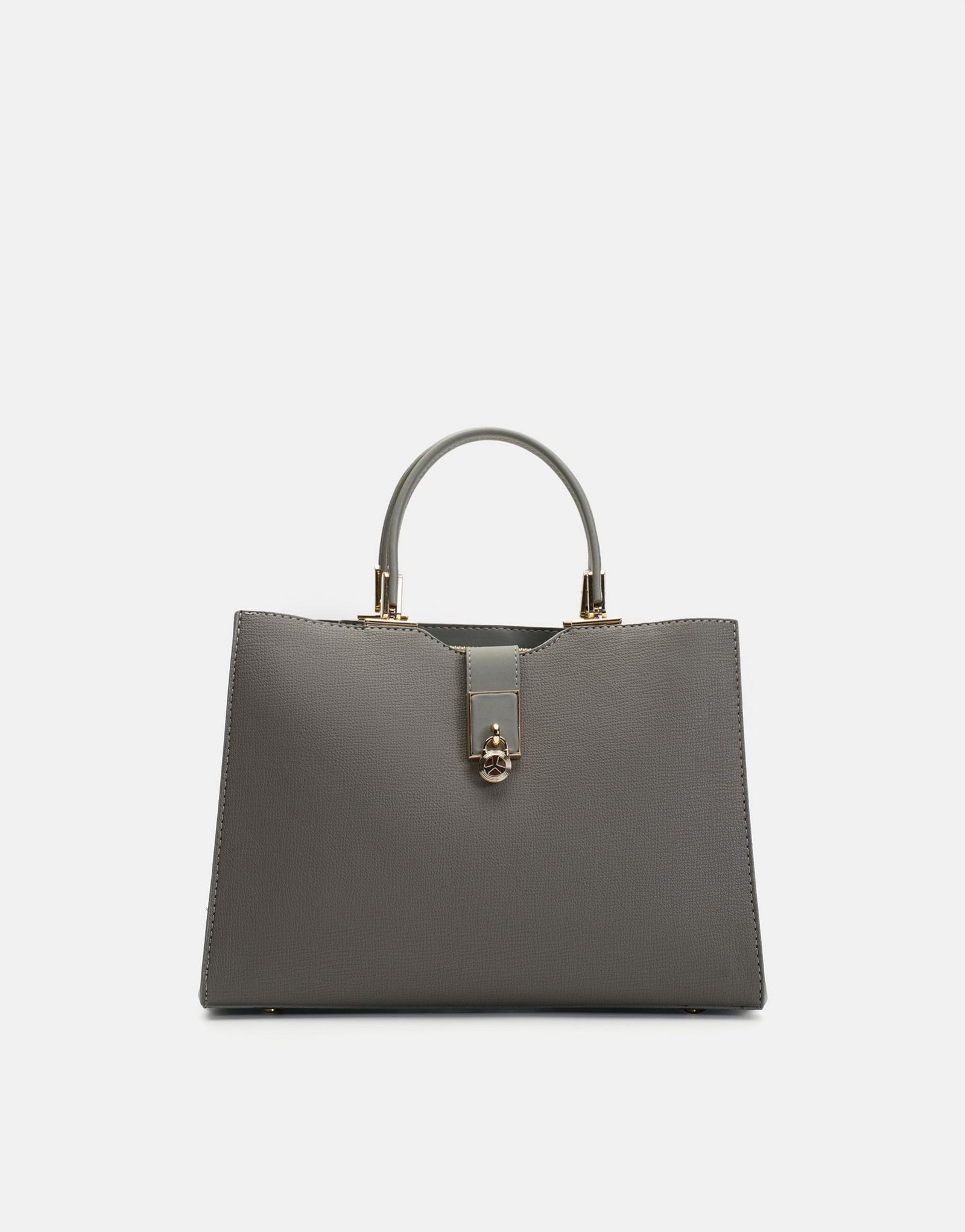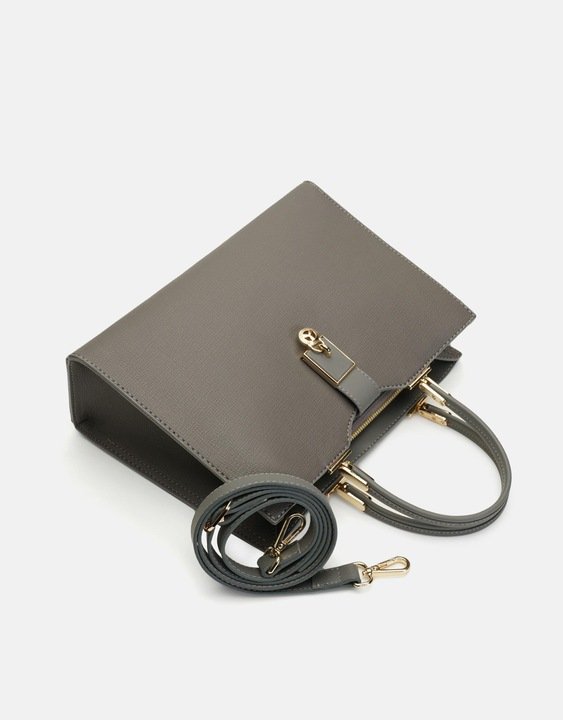 Przedmiotem oferty jest stylowa torebka typu kuferek w kolorze szarym, idealna na każdą okazję.