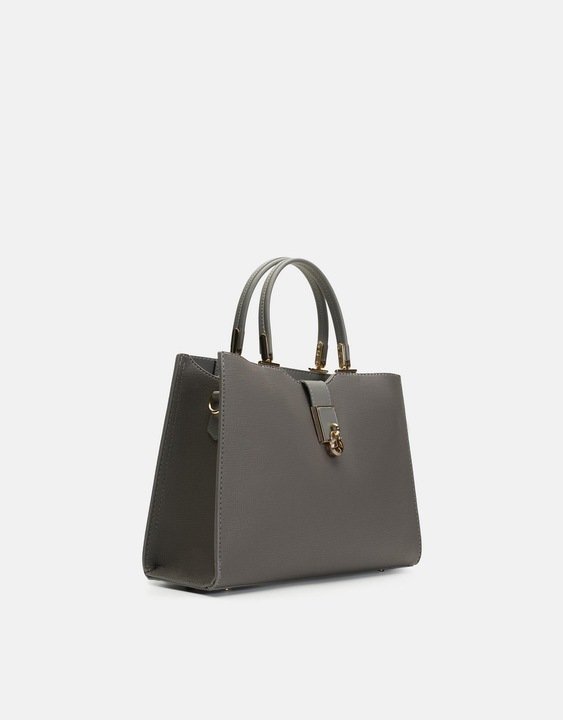 Torebka jest zapinana na klapkę z ozdobnym zapięciem.
